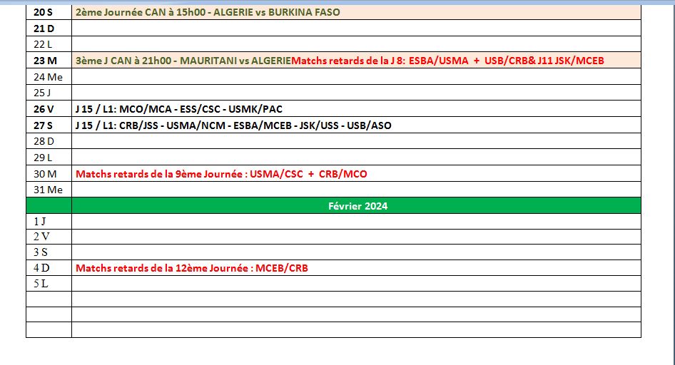 وفي يوم الـ 11 جانفي برمجت الرابطة لقاءين متأخرين بين كل من اتحاد العاصمة أمام شبيبة الساورة ومولودية وهران أمام شباب قسنطينة.