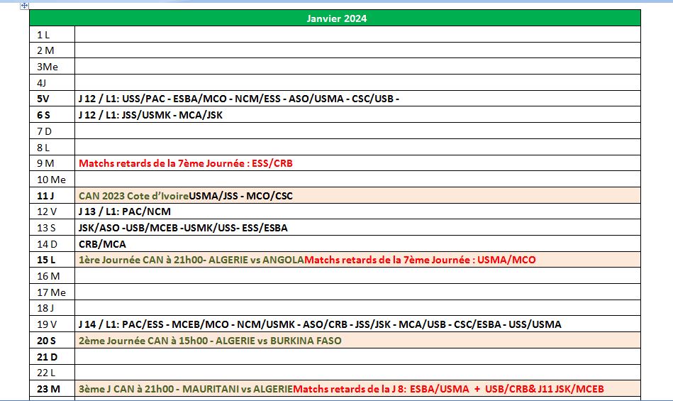 وستلعب لقاءات الجولة الـ 12 كما هو معلوم. يومي الجمعة والسبت الـ 5 والـ 6 جانفي على التوالي. على أن يلعب اللقاء المتأخر بين شباب بلوزداد ومضيفه وفاق سطيف عن الجولة الـ 7. يوم الثلاثاء الـ 9 من ذات الشهر.