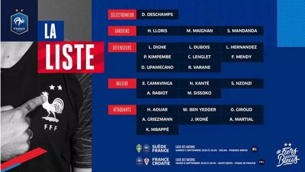 ووجه المدرب الفرنسي ديدي ديشان، الدعوة لنجم ليون الفرنسي، للمشاركة في مواجهتي السويد، وكرواتيا، ضمن منافسة النسخة الثانية من دوري أمم أوروبا.