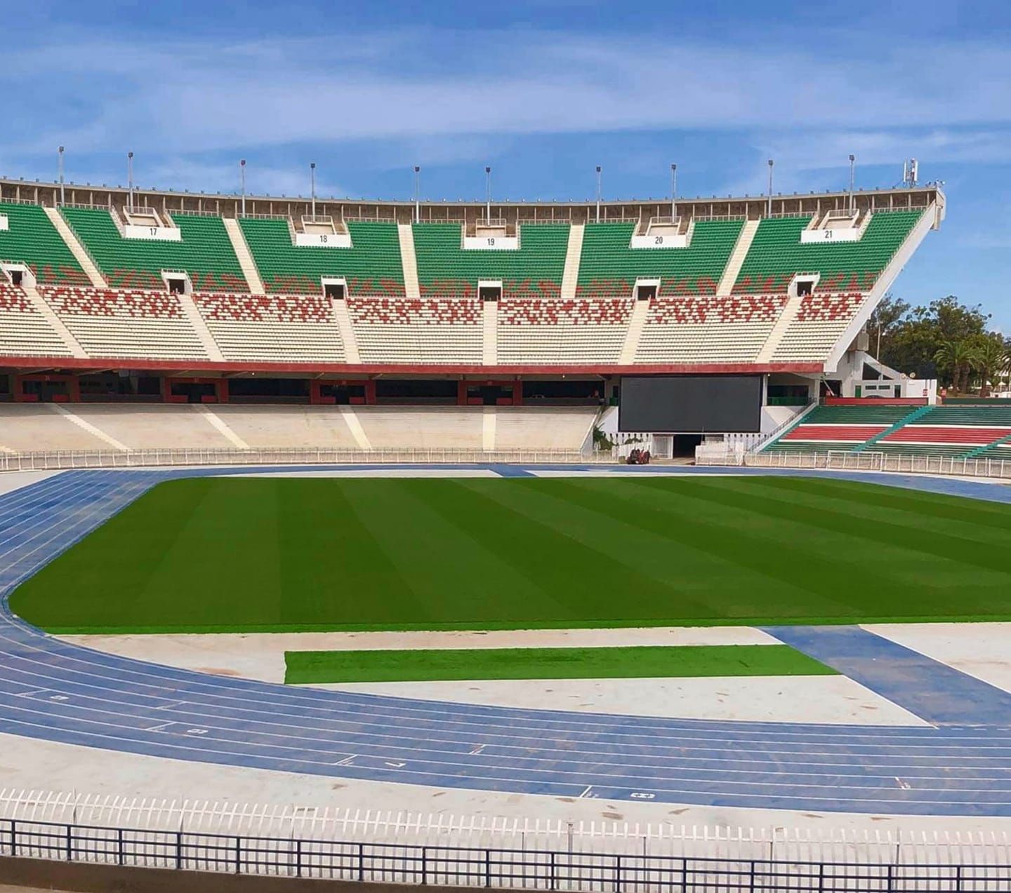 “تم اليوم الانتهاء من عملية الصيانة وجاهزية الملعب بنسبة 100% وهذا بفضل عمال المركب الأولمبي محمد بوضياف في انتظار إعطاء الضوء الأخضر لإحتضان لقاءات البطولة المحترفة وكذا المنافسات الدولية”.