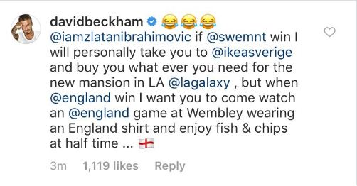 ورد بيكام على تغريدة إبرا: “لو فاز منتخب السويد سأذهب معك لهذا المتجر، وتشتري ما تريده لقصرك الجديد في لوس أنجلوس”.