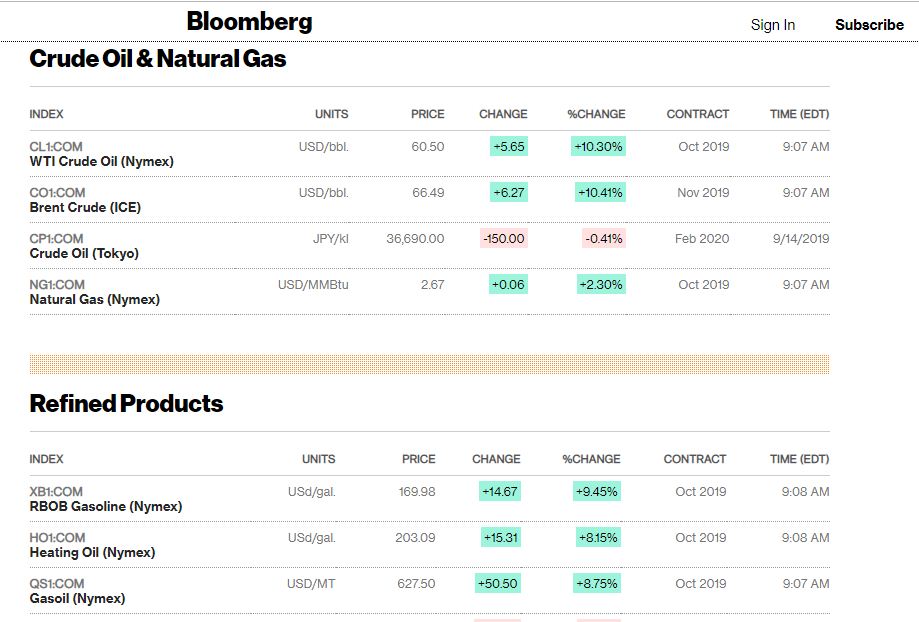عرفت أسعار المشتقات النفطية ارتفاعا كبيرا بعد الهجوم على منشآت نفطية في السعودية.