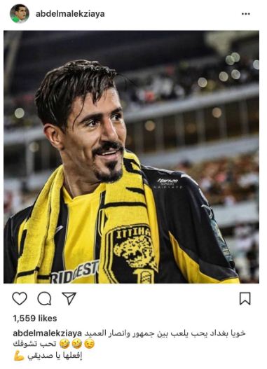 ونشر عبد المالك زياية، صورة لمهاجم الخضر، بغداد بونجاح، عبر حسابه الخاص على “أنستغرام”، وأرفقها برسالة وجهها لبونجاح، جاء فيها.