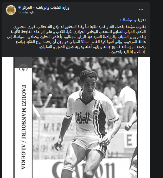 كما أضاف البيان:”على إثر هذه الفاجعة الأليمة، يتقدم وزير الشباب والرياضة السيد عبد الرزاق سبــقاق، بأخلص التعازي لعائلة المرحوم”.