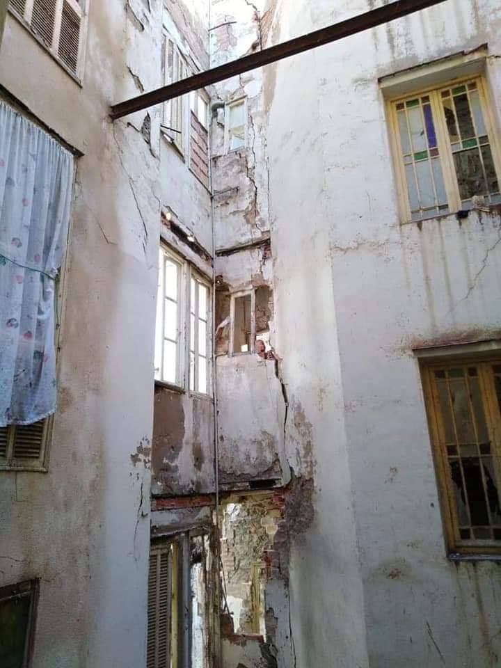 وبينت الصور الملتقطة للعمارة، بأن السكان يواجهون الموت المحتم، في حال الإستمرار داخل شققهم بالنظر للتصدعات التي تظهر على العمارة.