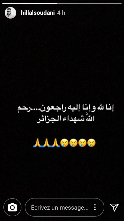 ونشر مُهاجم دينامو زغرب الكرواتي صورة على “ستوري” صفحته الشخصية في موقع التواصل الإجتماعي “إنستغرام” كتب فيها:”إنا لله وإنا إليه راجعون .. رحم الله شهداء الجزائر”.