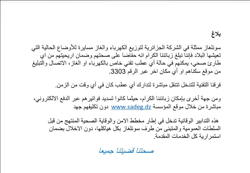 “سونلغاز” تتخذ إجراءات وقائية للحد من انتشار كورونا