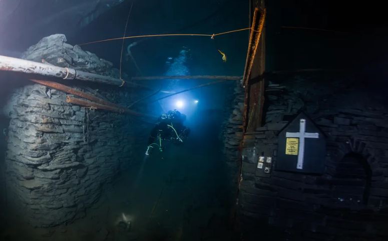 ومع ذلك، يُسمح للأرواح الشجاعة المعتمدة في مجال الغوص التقني باستكشافها. الماء بارد (حوالي تسع درجات) وتختلف الرؤية حسب القسم الذي تستكشفه.