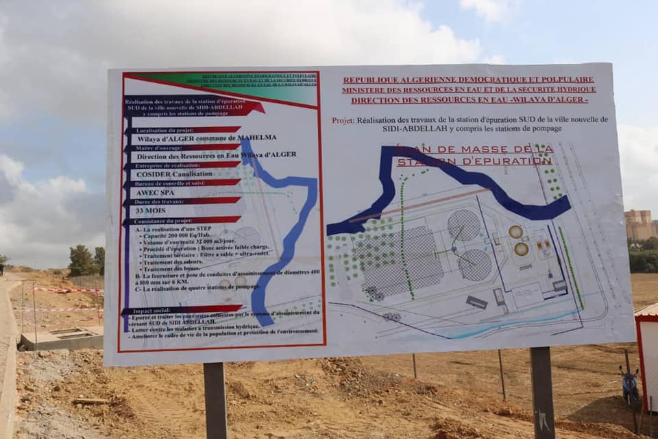 أشرف وزير الموارد المائية والأمن المائي، كريم حسني، على إعطاء إشارة الانطلاق لإنجاز محطة تصفية المياه المستعملة “الجهة الجنوبية” بالعاصمة. وتبلغ قدرة تصفية المياه في المحطة المتواجد في سيدي عبد الله، بـ 32.000 م³ مكعب في اليوم.