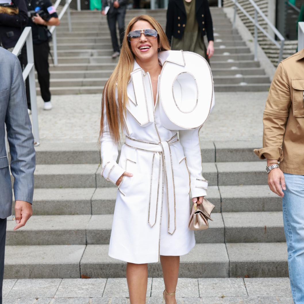 وارتدت النجمة الكولومبية خلال عرض فيكتور ورولف معطفا يحمل شعارا ثلاثي الأبعاد لكلمة “NO”. ونسقته مع حقيبة ذهبية وكعب عال باللون الذهبي. وهو ما اعتبره متابعون رسالة جديدة لبيكيه.