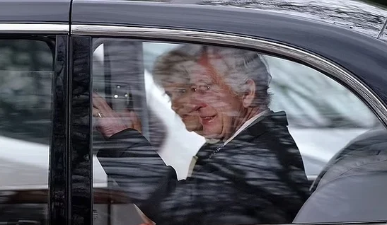 وظهر الملك تشارلز، رفقة زوجته الملكة كاميلا، داخل السيارة، بعدما التقى بابنه الأمير هاري. لمدة تقل عن ساعة في أول لقاء مباشر جمع بينهما منذ تسعة أشهر.