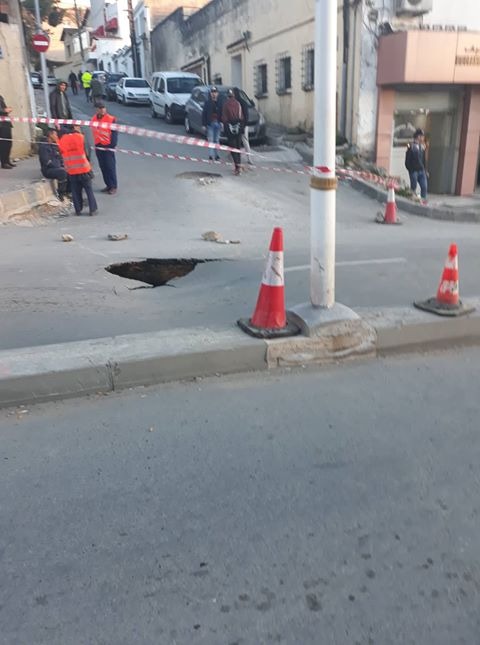 وقع اليوم السبت إنهيار في الطريق الرئيسي بالقرب من مقر بلدية بن عكنون في العاصمة ما تسبب في شل حركة السير.