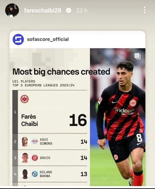 و وضع فارس شايبي صورته رفقة إحصائياته التي نشرها موقع “سوفاسكور” العالمي، في إشارة واضحة منه إلى الناخب الوطني بيتكوفيتش الذي فضل عدم استدعائه لتربص جوان.