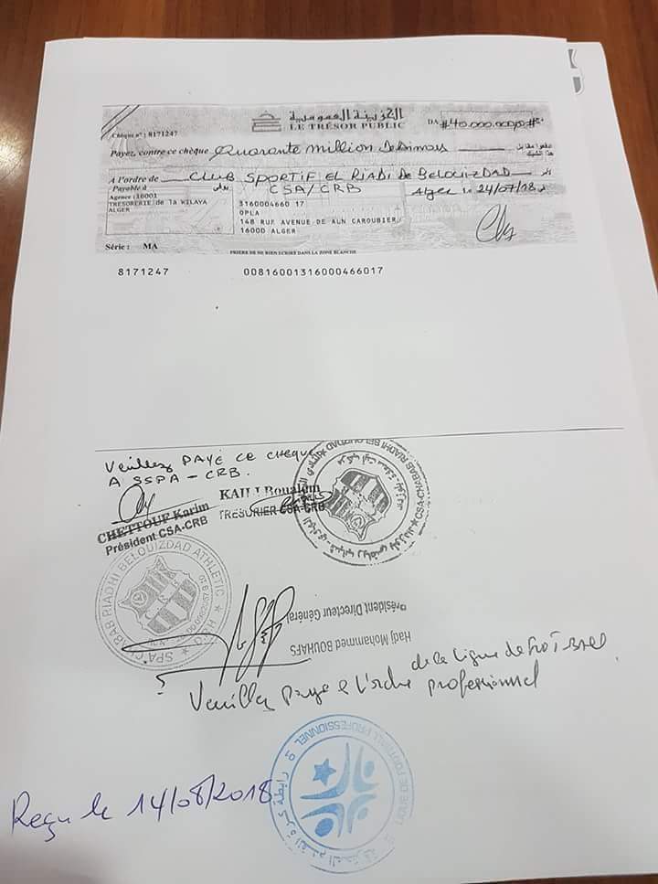 قامت إدارة شباب بلوزداد بتسيلم صك للرابطة المُحترفة لكرة القدم، يُثبت قيامها بدفع جزء من ديونها العالقة لدى لاعبيها السابقين.