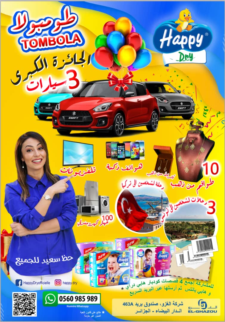 تنظم شركة الغزو مسابقة كبرى تحتوي على العديد من الجوائز، حيث تتمثل شروط في جمع 4 قصاصات كودبار من منتج “HAPPY DRY”.