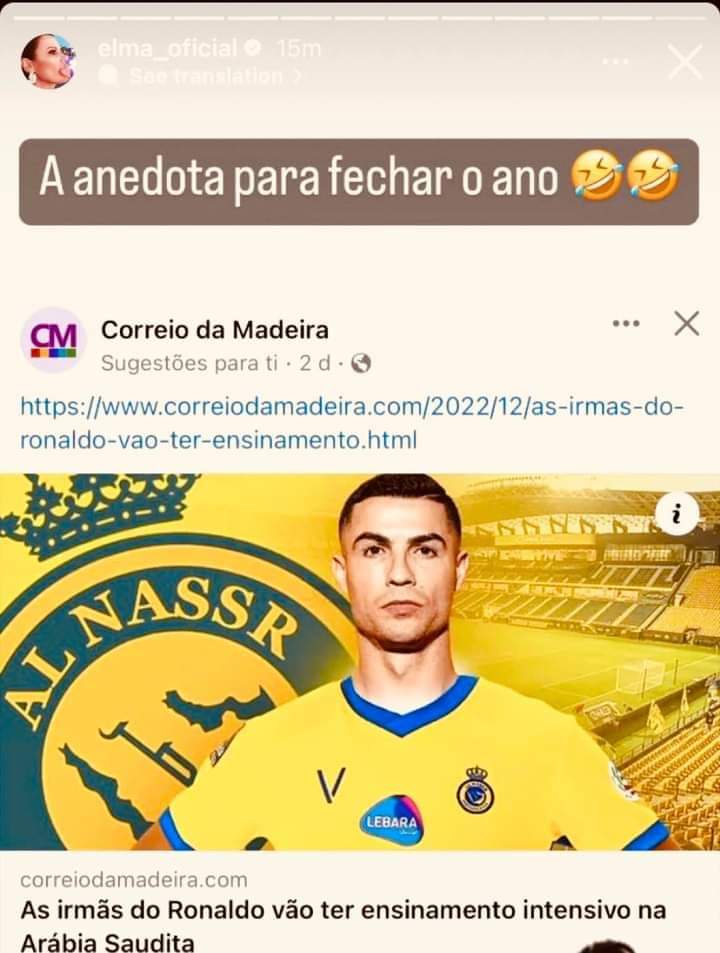 ونشرت شقيقة رونالدو، عبر حسابها الخاص على “اسنتغرام”، الخبر الذي نقلته موقع “correio da madeira”.