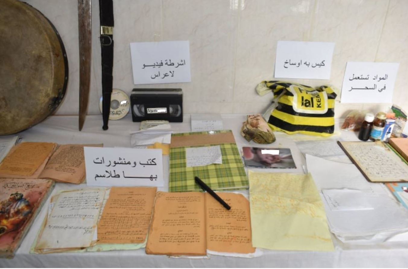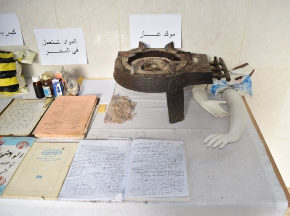 وتم حجز كل هذه الأغراض وانجاز ملف جزائي ضد المعني بالتنسيق مع الجهات القضائية بقضية النصب وممارسة طقوس الشعوذة .