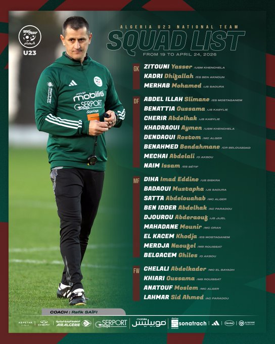 صايفي يكشف قائمة منتخب أقل من 23 عاما المعنية بالتربص المقبل