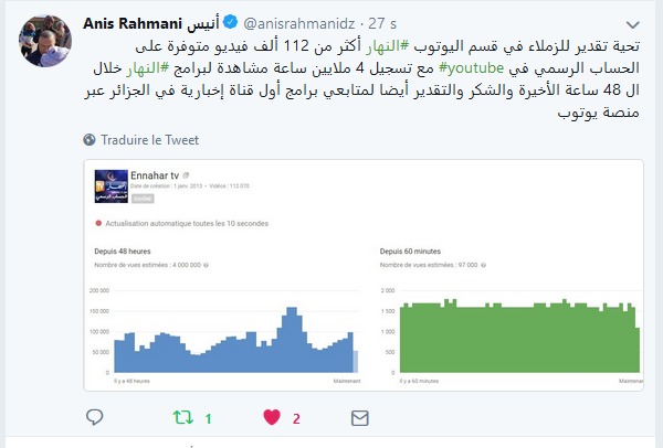 كما وجه الرئيس المديرالعام لمجمع “النهار” الزميل، أنيس رحماني، رسالة شكر عبر صفحته الرسمية في “الفيسبوك” كل متابعين صفحة “النهار” قائلا: