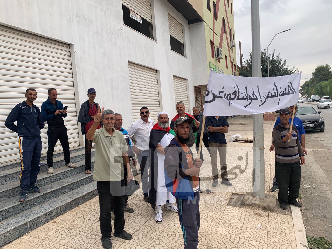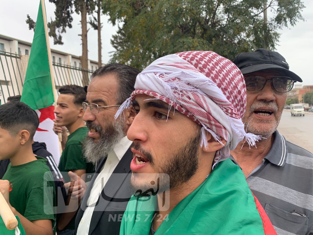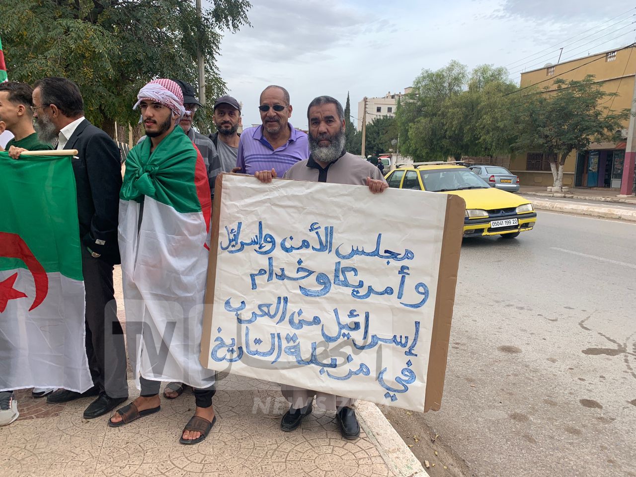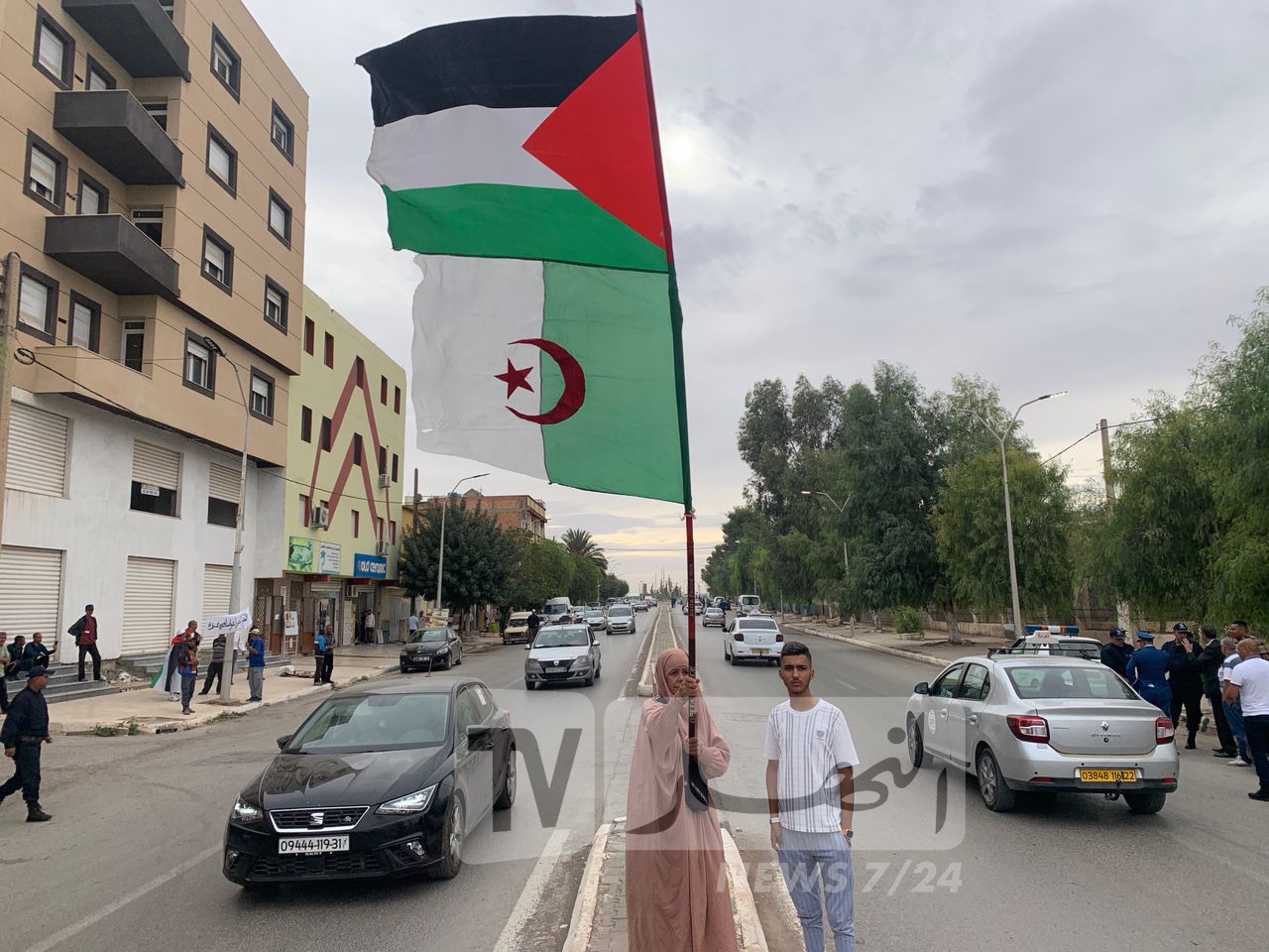 أين رفع المواطنون الجزائريون لافاتات مكتوب عليها شعارات تدعم الشعب الفلسطيني. وتدين الأعمال الهمجية التي يشنها الكيان الصهيوني ضد فلسطنين، خارقا كل القوانين الدولية.