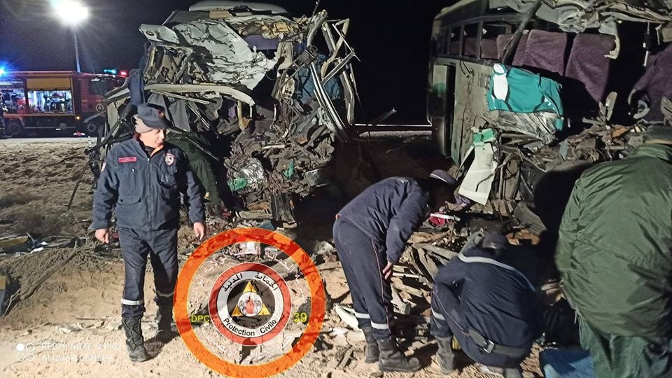 وأظهرت صور مصالح الحماية المدنية حجم الكارثة المرورية التي سجلت أثناء إصطدام حافلتين لنقل المسافرين، ببلدية سطيل الحدودية بين ولايتي بسكرة والوادي.