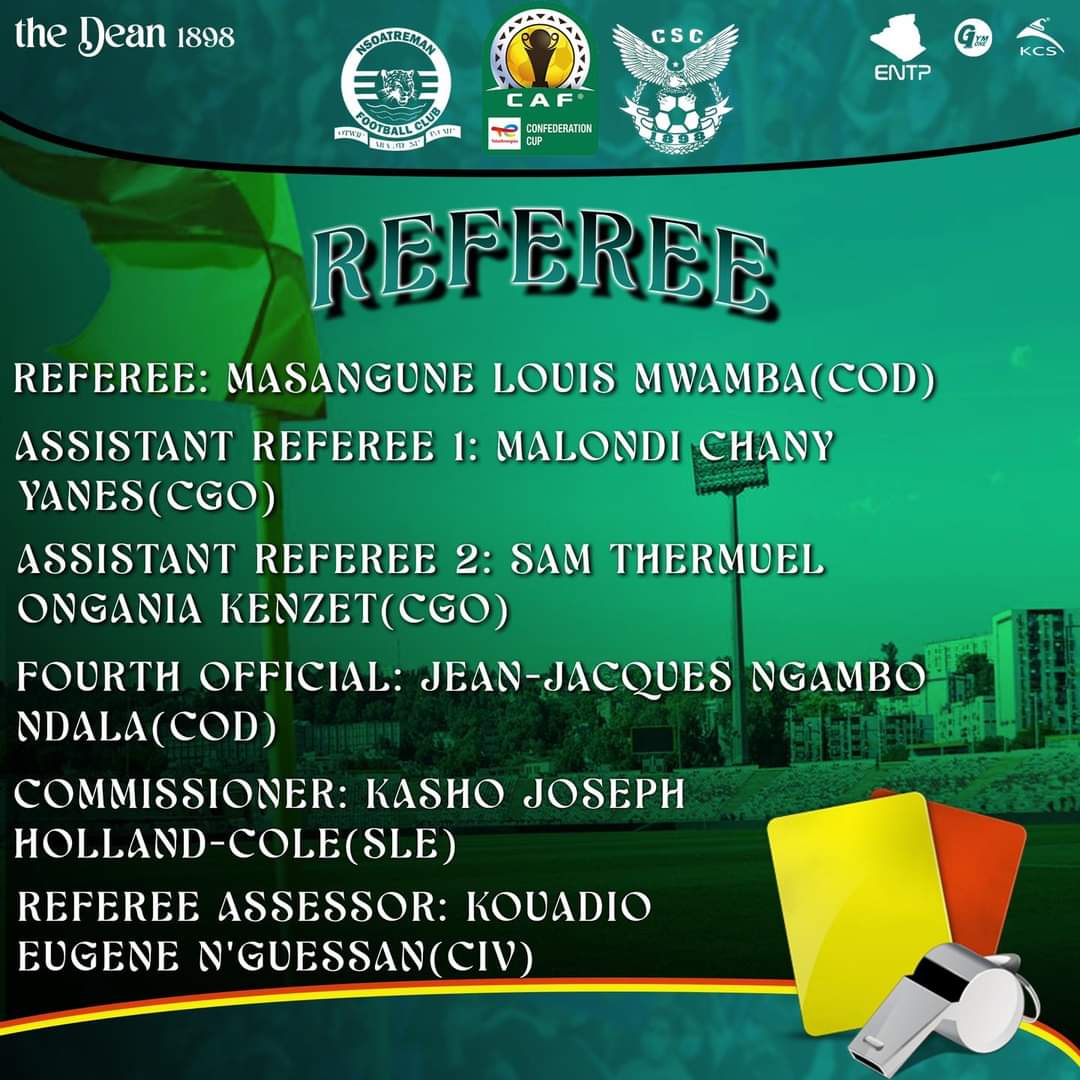 وسيدير الحكم مسانغون، هذا اللقاء ، بمساعدة مواطنيه مالوندي شاني يانس، وسام تيرموال اونغانيا كنزات، بالإضافة للحكم الرابع سام تيرموال أونغانيا كنزات.
