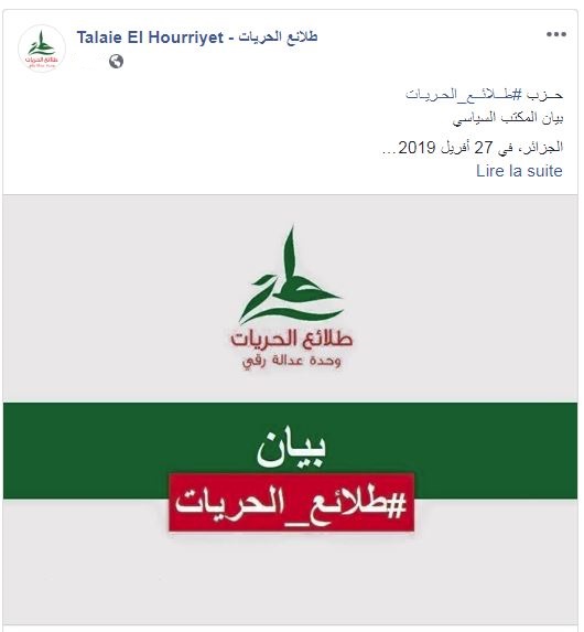 سجل حزب طلائع الحريات بإرتياح التزام المؤسسة العسكرية بتقديم دعمها لكل حل “يضمن الاستجابة لكل المطالب المشروعة” للشعب الجزائري و يحظى بقبول الجميع.