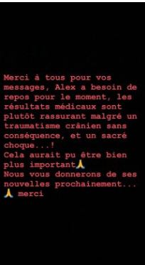 وجاء في الرسالة:”شكرا لكم جميعا على رسائل الدعم، في الوقت الحالي يحتاج ألكسندر للراحة، الفحوصات الطبية جاءت مُطمئنة رغم بعض المخاوف”.