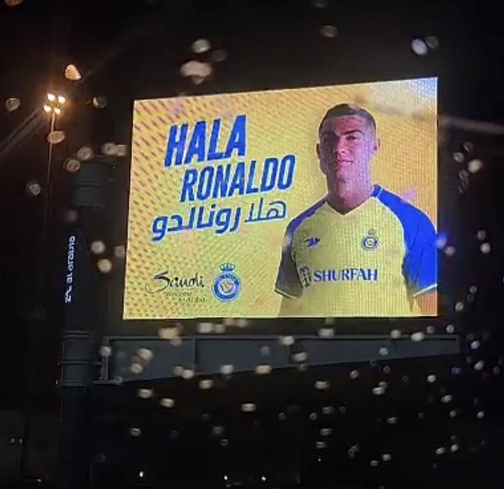 لتكتفي بتواجد صورته في اللافتات الإشهارية لشوارع الرياض مع عبارة “هلا رونالدو”.