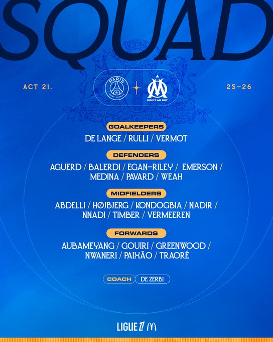 تواجد الدولي الجزائري، حيماد عبدلي، ضمن القائمة الموسعة لفريقه أولمبيك مارسيليا، المعنية بمباراتهم المقبلة ضد مضيفهم نادي باريس سان جيرمان.