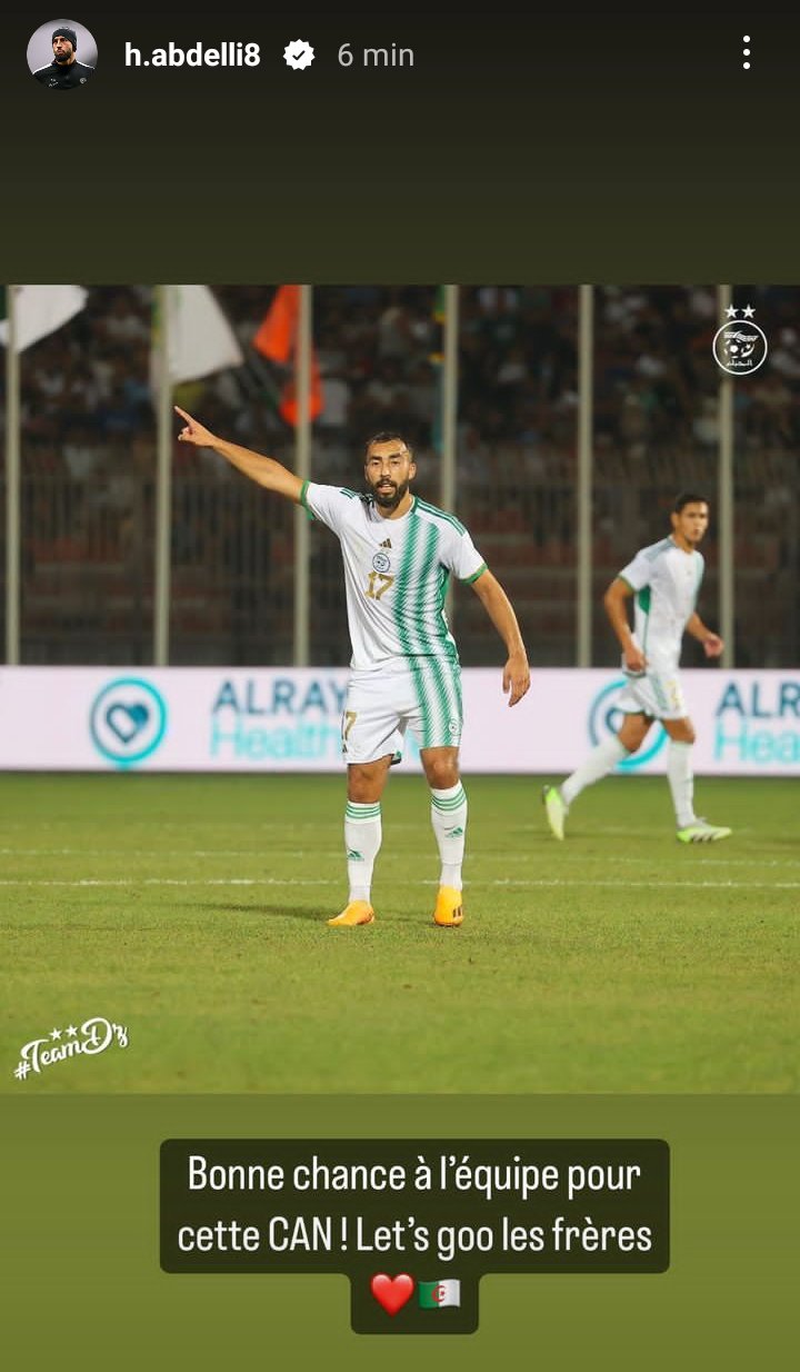 كما عبّر الدولي الجزائري، ونجم نادي أنجي الفرنسي، عن دعمه لزملائه في الخضر، قائلا: “هيا بنا يا إخوتي”.