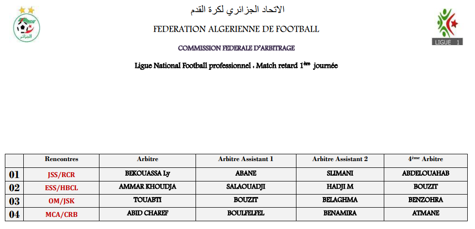 وسيدير الحكم عبيد شارف، هذا الداربي، بمساعدة كل من بوفلفال، كمساعد أول، وبن عميرة مساعد حكم ثاني، بالإضافة عثمان، حكم رابع.