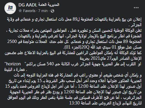 ودعت “عدل” الراغبين في الشراء، التقرب من مقر المديرية جهوية الجزائر غرب، حي 540 مسكن براكني عمارة د البليدة .