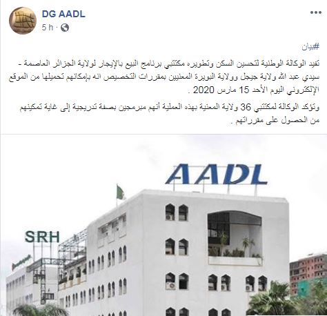 وتؤكد الوكالة لمكتتبي 36 ولاية المعنية بهذه العملية أنّهم مبرمجين بصفة تدريجية إلى غاية تمكينهم من الحصول على مقرراتهم.