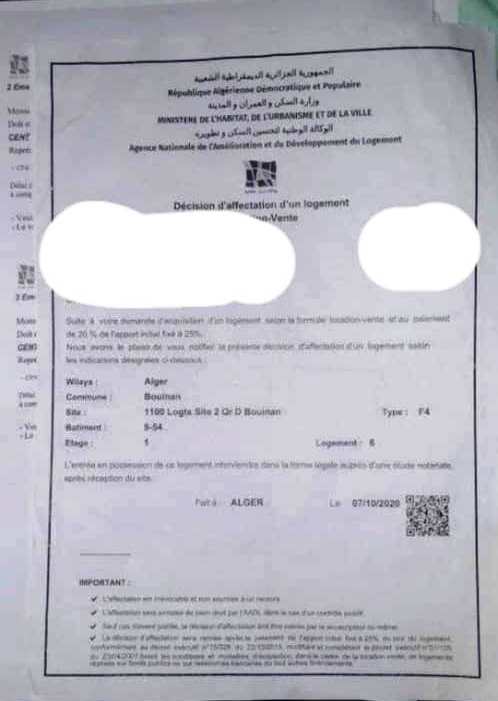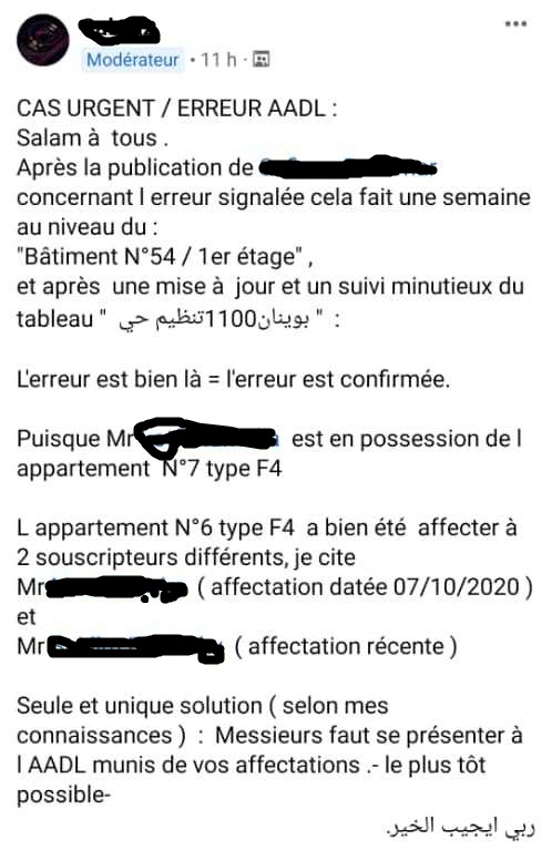 كما نشر أحد المكتتبين في اطار برنامج عدل، شهادة التخصيص الخاصة به التي اسفاد منها مؤخرا. والتي جاء فيها استفادته من سكن في عمارة 54 و4 غرف- الطابق الأول ورقم الباب6. ليرد مستفيد آخر أنه استفاد من نفس المنزل في العمارة ذاتها والطابق. إلا أنه كان من الأوائل الذين سحبوا شهادات التخصيص.