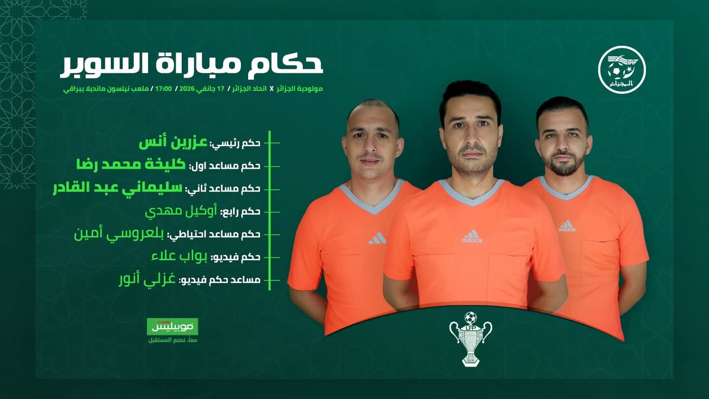 أعلنت اللجنة الفيدرالية للتحكيم التابعة للاتحاد الجزائري لكرة القدم عن طاقم التحكيم الذي سيدير مباراة كأس السوبر الجزائري.