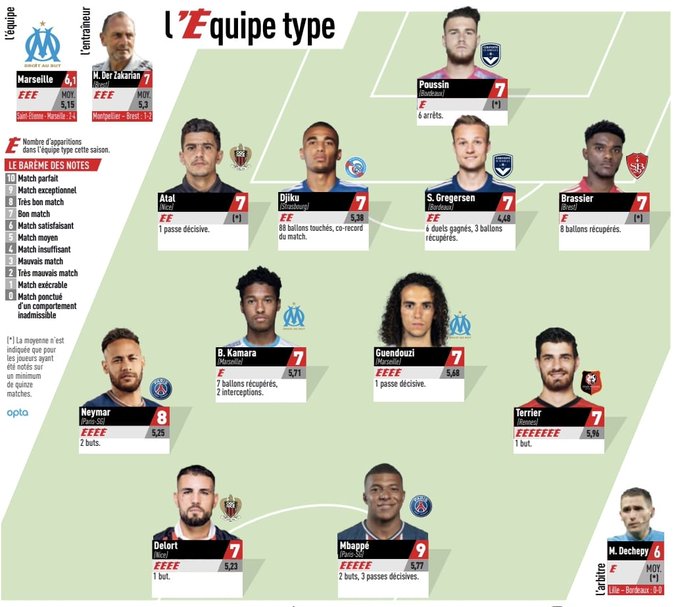 وكشفت صحيفة ليكيب “الفرنسية”، عن تشكيلتها المثالية عن الجولة الثلاثين من الدوري الفرنسي، والتي ضمت اسم عطال.