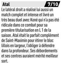 واختارت صحيفة “ليكيب” الفرنسية، عطال ضمن التشكيلة ومنحته علامة 7/10 كأفضل ظهير أيمن في الجولة الـ 14.