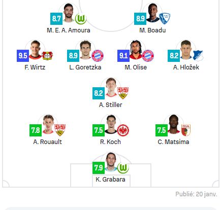 ونشر موقع “سوفاسكور” المختص في الأرقام والاحصائيات، تشكيلة الجولة الـ 18 من الدوري الألماني، والتي عرفت تواجد عمورة.