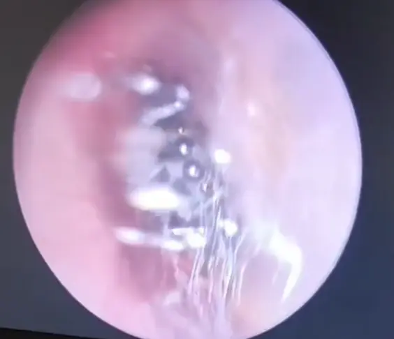 وفي اللحظة المرعبة التي وثقها الفيديو، أرسل الطبيب مسباراً مزوداً بكاميرا داخل أذن المريضة اليمنى.