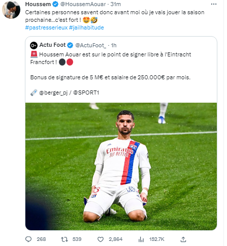 وتداولت أخبار كثيرة بشأن اتفاق اللاعب صاحب الأصول الجزائرية مع فرانكفورت الألماني بالإنتقال له بشكل مجاني في بداية شهر جوان القادم بقيمة سنوية حوالي 3 مليون أورو.