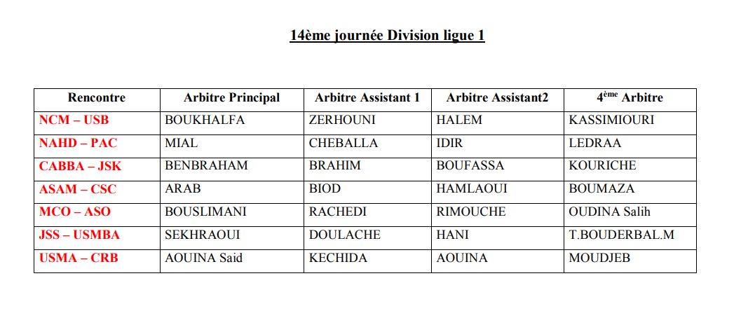 وجاءت باقي تعيينات حكام الجولة الـ14 من المحترف الأول، كاملة على النحو التالي: