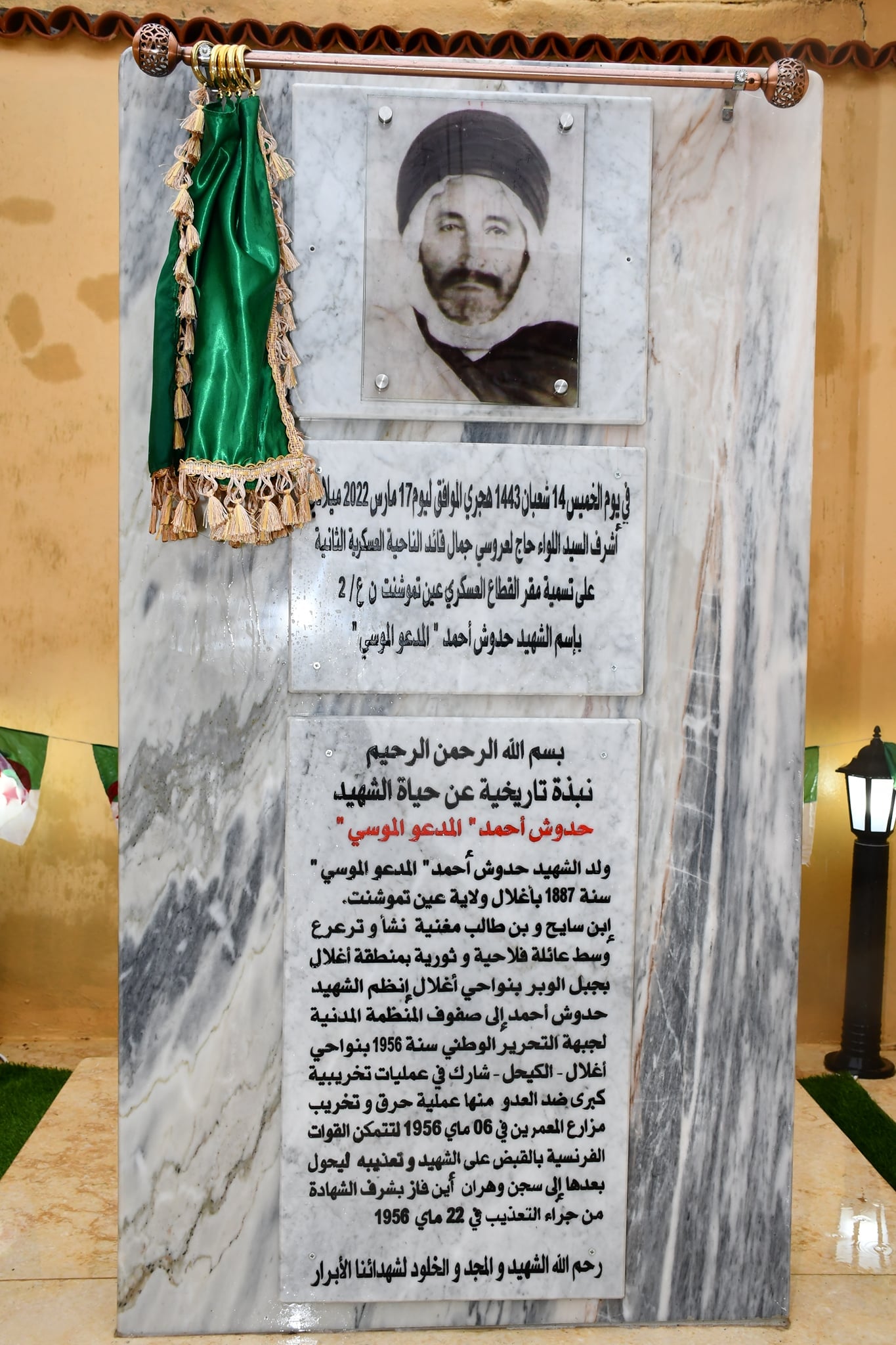 أما بالناحية العسكرية الثانية، أشرف اللواء حاج لعروسي جمال، قائد الناحية العسكرية الثانية على مراسم تسمية مقر القطاع العسكري بعين تموشنت باسم “الشهيد حدوش أحمد”.