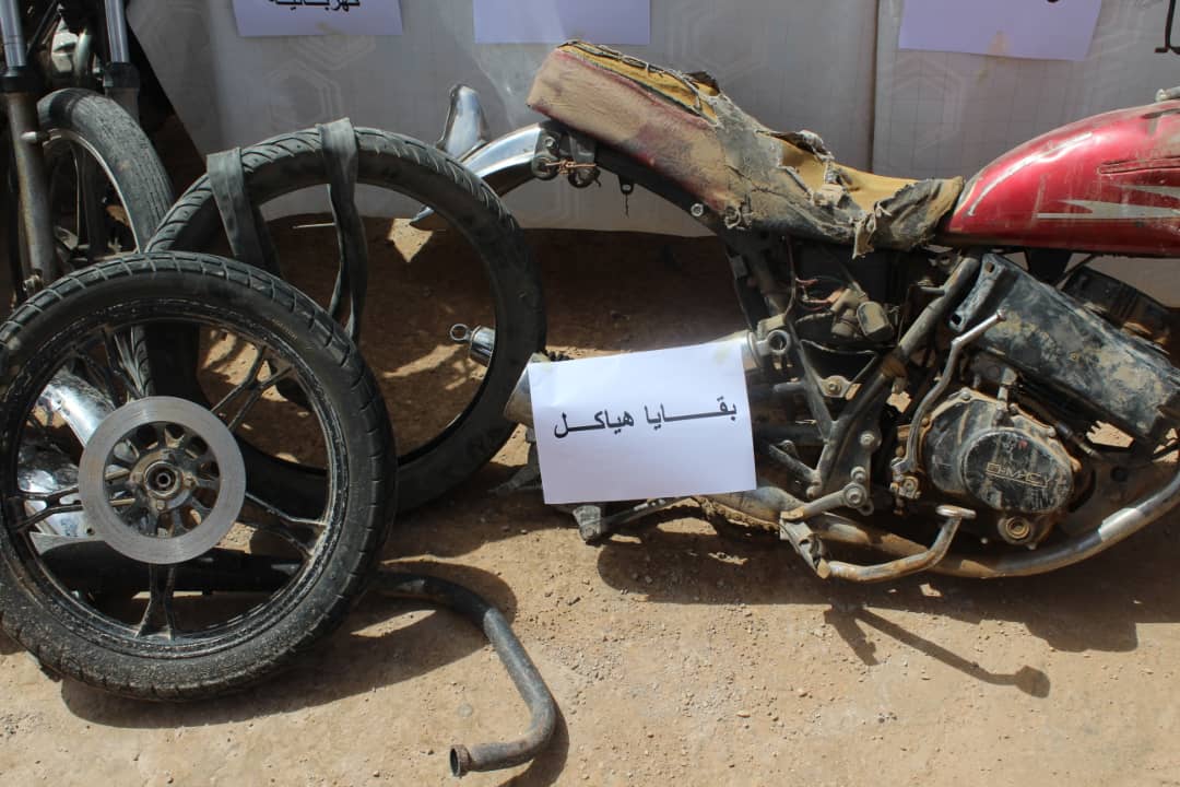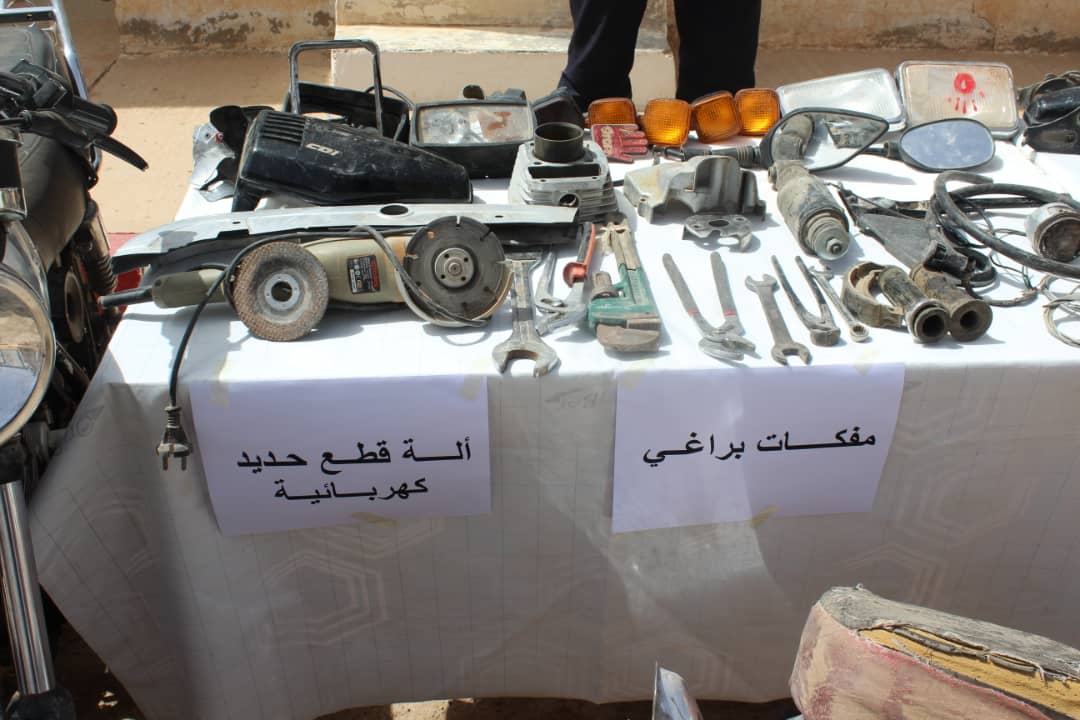 تم توقيفه والتحقيق المعمق معه تم العثور على اجهزة تفكيك وتزوير الارقام التسلسلية للدراجات النارية الى جانب قطع غيار دراجات نارية ومفكات براغي.