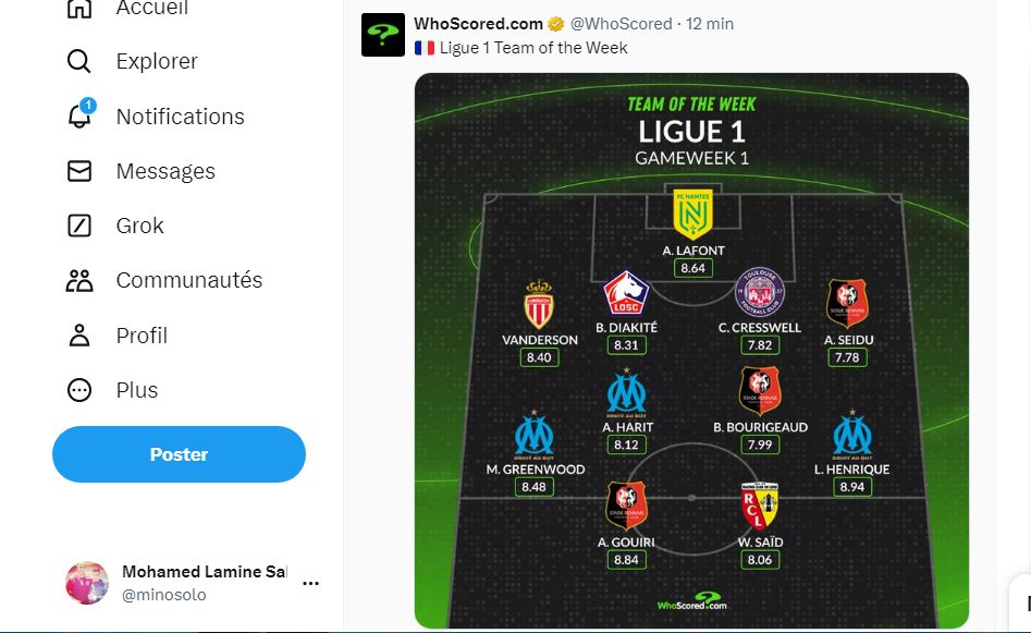 تواجد الدولي الجزائري، ونجم نادي رين الفرنسي، أمين غويري، ضمن تشكيلة الجولة الأولى من “الليغ1” الفرنسية.