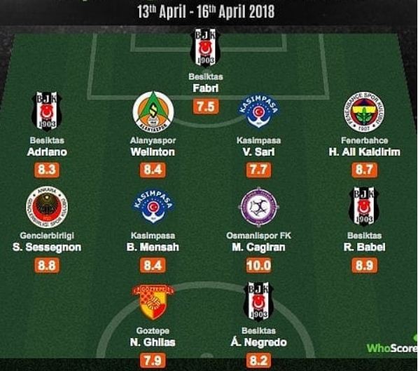 وتحصل غيلاس على علامة 7.9 ليُرافق النجم الإسباني لنادي بيشكتاس “ألفارو نيغريدو” في خط الهجوم في التشكيلة المثالية.