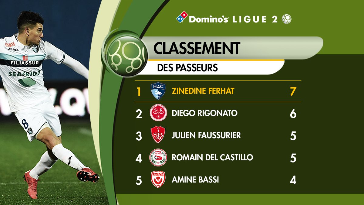 عاد الجزائري “زين الدين فرحات” لاعب “لوهافر” الفرنسي ليتصدر ترتيب أفضل ممري “الليغ 2” حيث رفع رصيده إلى 7 تمريرات حاسمة هذ الموسم.