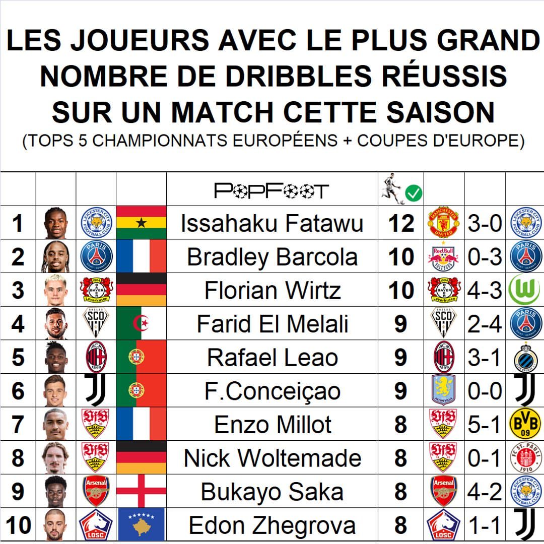 وحسب آخر إحصائية لموقع “Pop foot” الفرنسي، المتخصص في الأرقام القياسية، فقد احتل خريج مدرسة بارادو، المركز الرابع في قائمة أفضل عشرة لاعبين قياما بالمراوغات الناجحة في الدوريات الخمسة الكبرى.