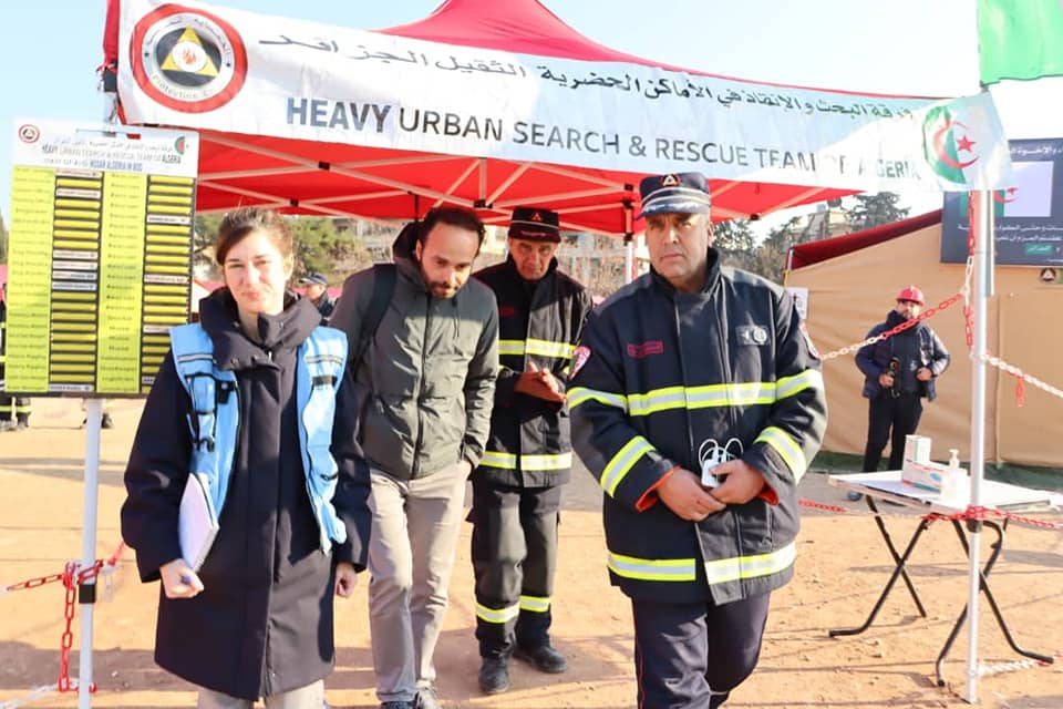 زار فريق الأمم المتحدة للتقييم والتنسيق في مجال الكوارث “UNDAC” فريق الحماية المدنية الجزائرية المتدخل في الزلزال المدمر بسوريا وتركيا.