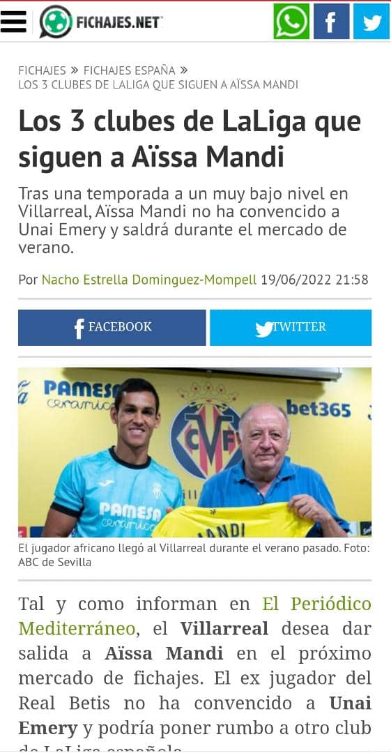 حدد فريق فياريال الإسباني، القيمة المالية للتخلي عن مدافعه ولاعب المنتخب الوطني، عيسى ماندي، بعد تأكد رحيله عن الفريق.